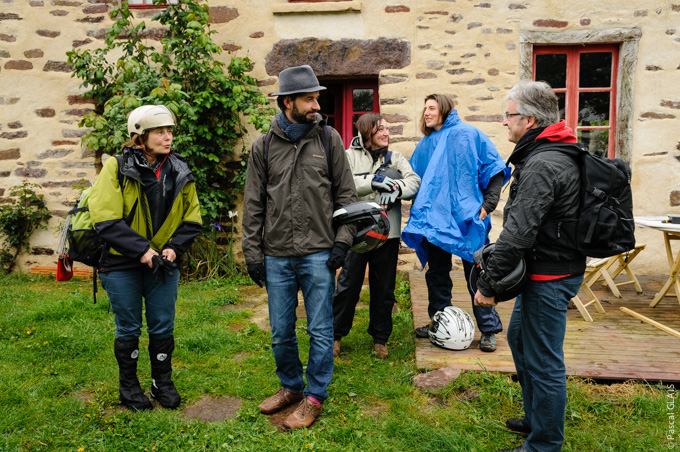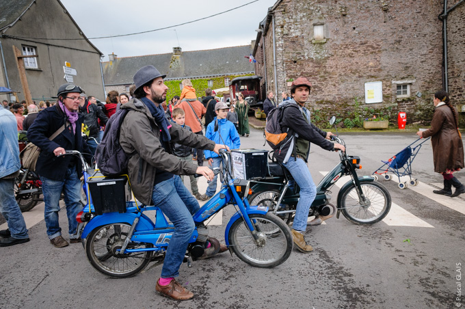Saint-Malon-sur-Mel*. Francis Monnerais, figure locale, est un conteur hors-pair. Ancien électricien, il a coutume de se présenter ainsi :  » Je suis un conteur en phase, toujours au courant de tout ! ». La famille Monnerais accueille les croqueurs autour d’une potée vantée comme « succulente« . A la boulangerie Brulard, les enfants guettent les mobylettes, impatients. Joyeux ensemble de frimousses que Viviane, Guillaume, Tazab et Yannick s’empressent de croquer.