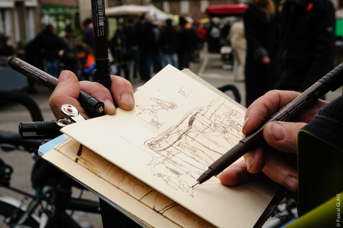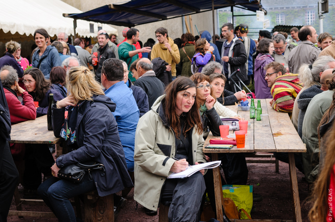 Soirée à la brasserie de Gaël, concert et bière locale. Un peu avant 23 heures, les croqueurs déboulent et pillent le stock de sous-bocks. Ce soir, le mot d’ordre c’est Croq and sous-bock !. Pas un client qui n’échappe au crayonné toujours sagace et perspicace. Chacun son style, bavard ou silencieux, mais hyper-concentré. Le moment se prête à la caricature pour ceux qui maitrisent la manière. Il y a aussi le croqueur qui croque le croqueur qui croque le patron du bar. Il parait que 300 sous-bocks seront dérobés au tenancier, afin d’alimenter l’after. Mais ça c’est du off… !