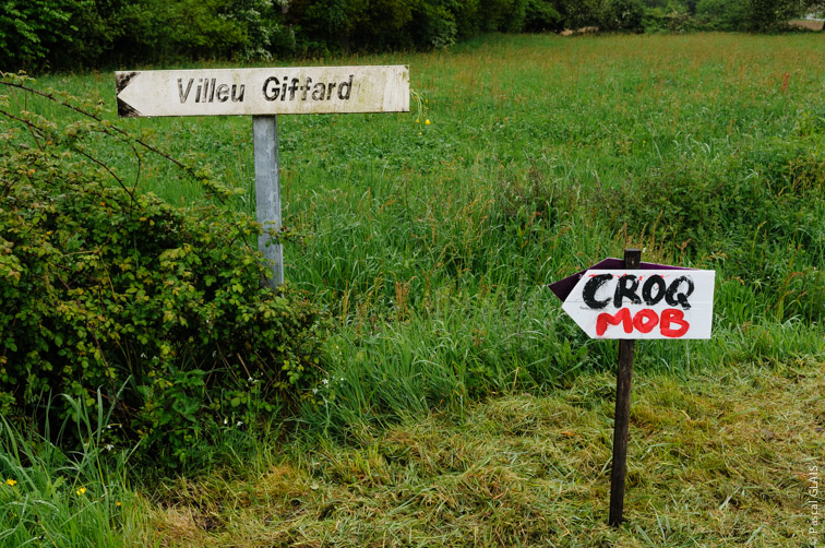 La météo ? Une bagatelle ! Le croqueur s’adapte et veille à agir en souplesse sur l’asphalte (on ne rapporte qu’un seule rencontre fortuite avec un talus). Non, la pluie n’altère pas le moral et le jour 2 est aussi dense que le jour 1, avec potée, gâteau à l’ananas et bière locale au menu. Balade à Saint-Malon-sur-Mel et Gaël.