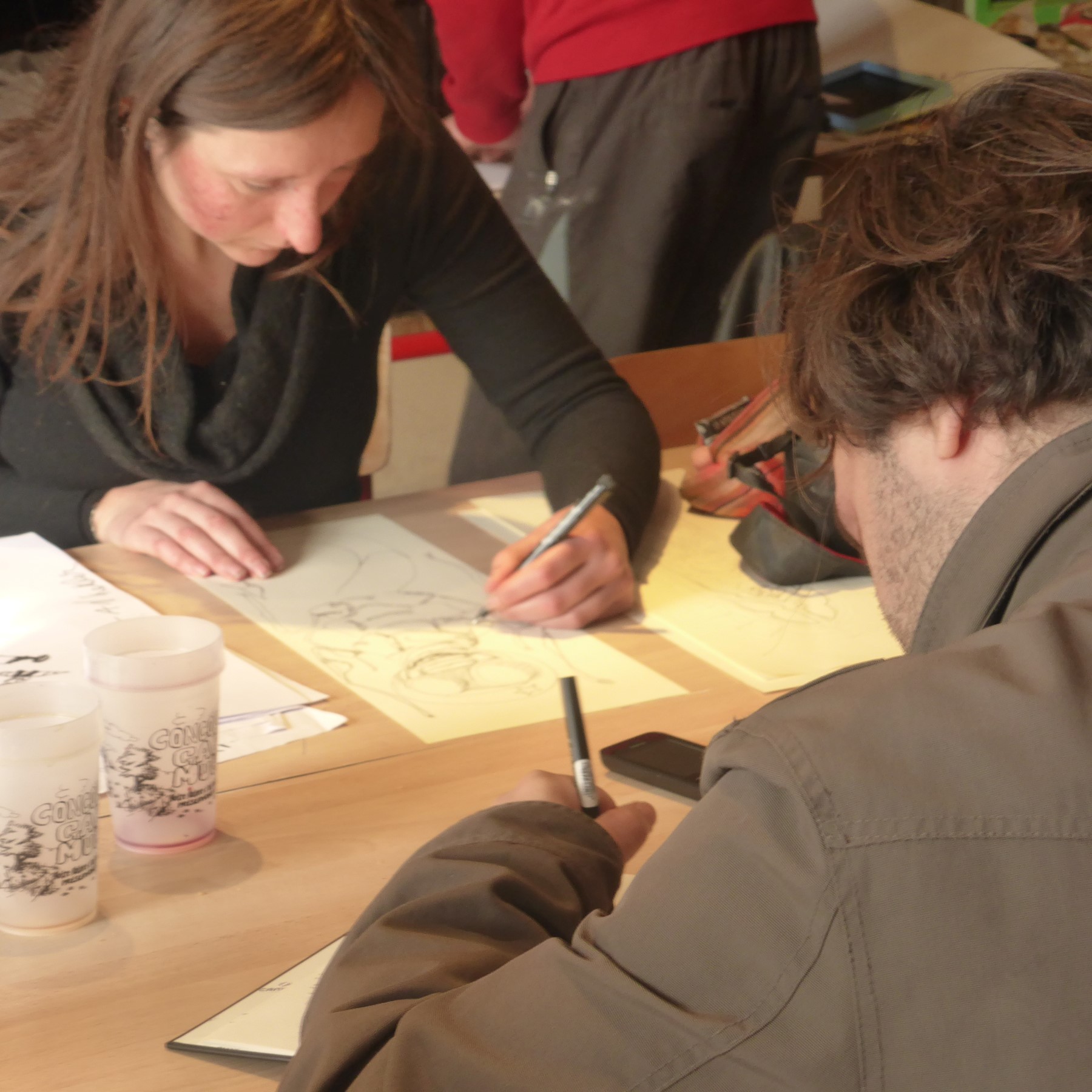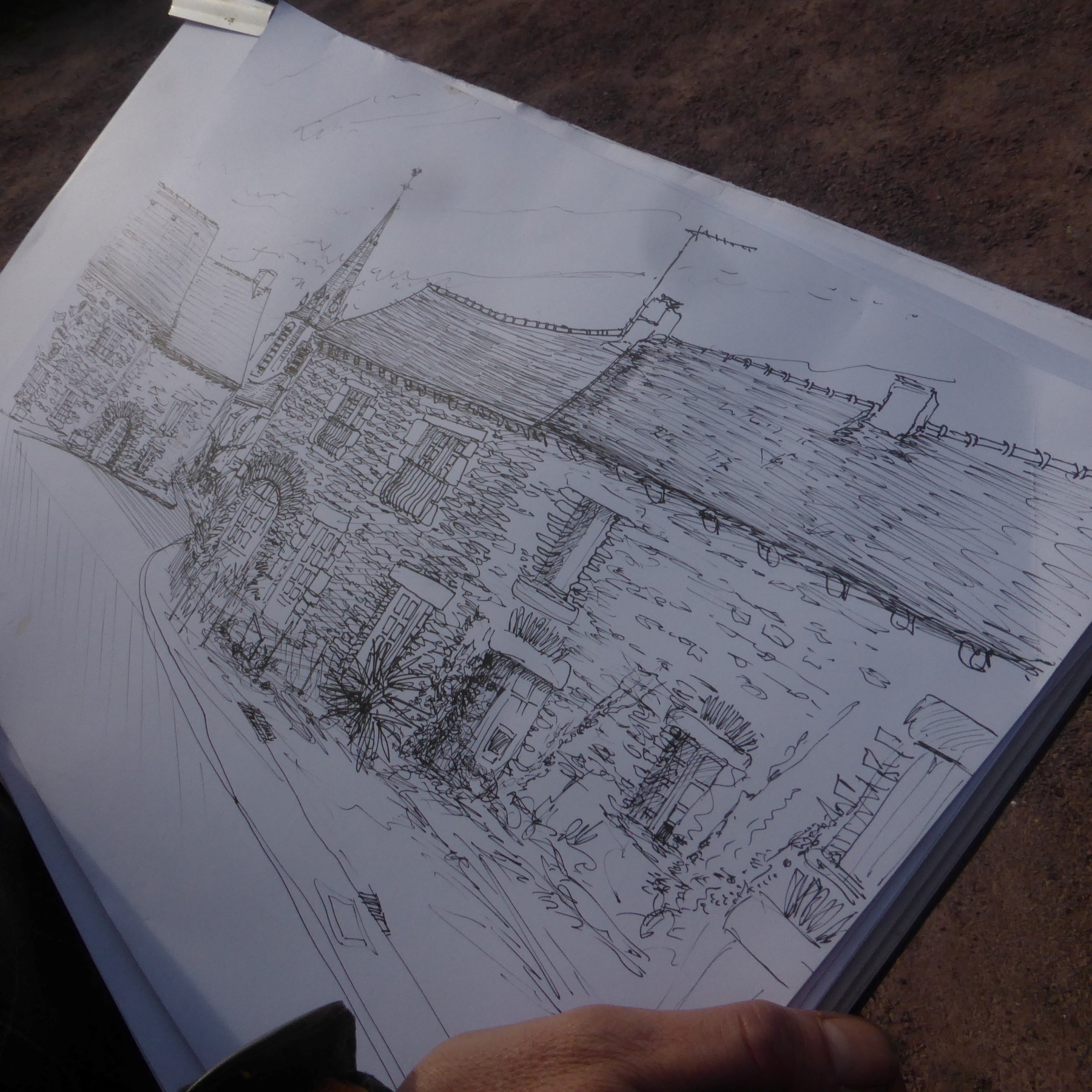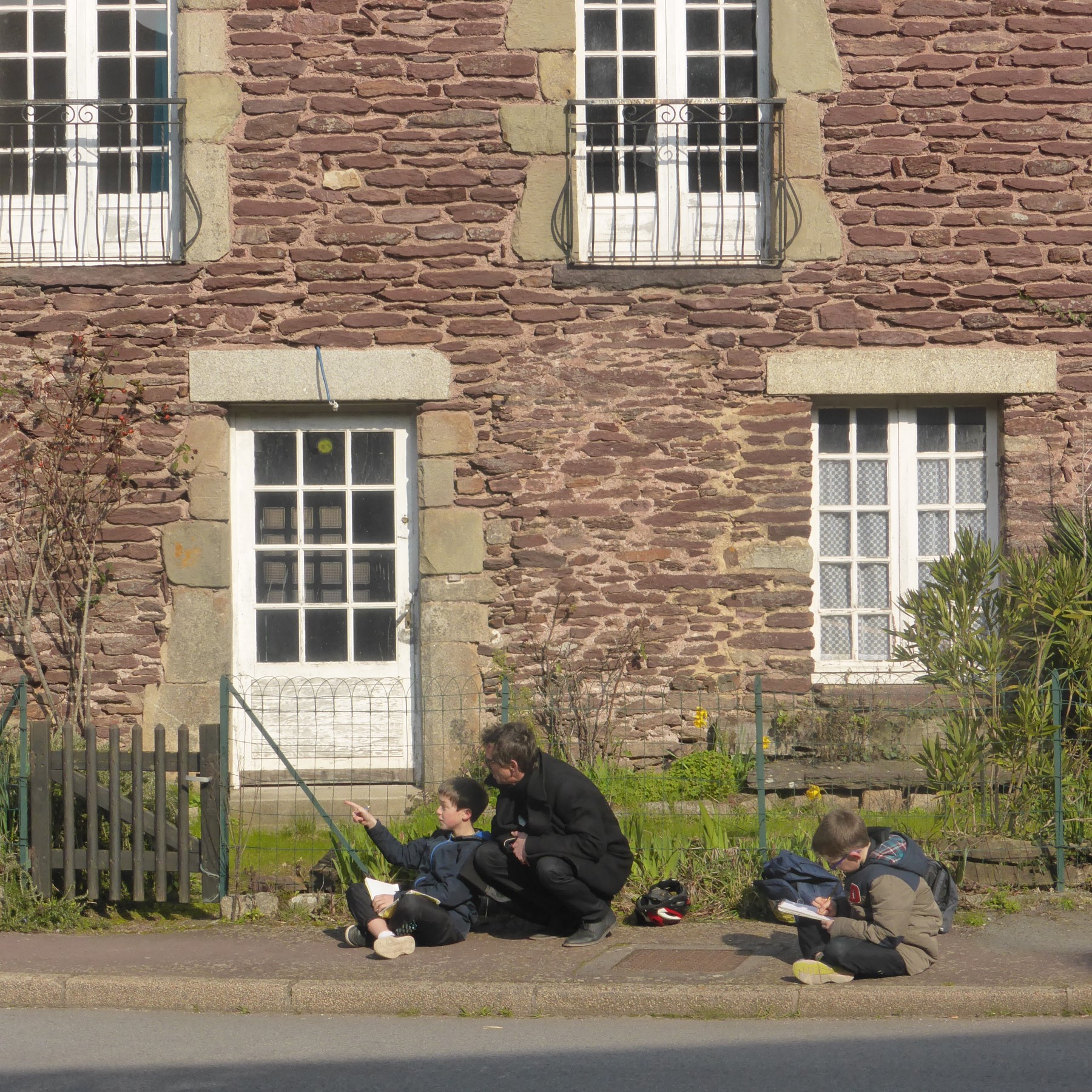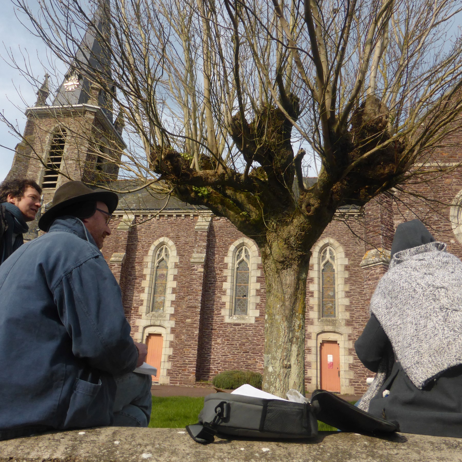 Le dessinateur est doté d’un flux thermique indifférent aux intempéries (certains croquent sous la neige ou dans la tempête sans se démonter). Merci aux dessinateurs qui ont bravé le vent du nord-est afin de croquer pierres rouges, arbres, linteaux, congénères, libellules imaginaires et patrimoine rural. Du bas du bourg, du haut du bourg, des alentours et même d’Auray, vous avez été nombreux, enfants, adultes, sketchers, aquarellistes, Concoretois… Un beau Samedi Croquis que nous avons aimé organiser avec la Grande Lessive du CPIE Forêt de Brocéliande. Merci à Lou, Christian et aux animateurs, merci pour le feu de cheminée, merci monsieur le maire. Merci à Félix Legrand de France Bleu Armorique qui nous a fait causer dans le poste.